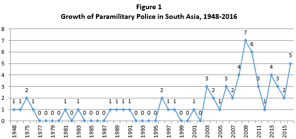 This essay argues that aside from military forces, paramilitary police units (PPUs) are emerging as a salient feature of the South Asian counterterrorism regime. In spite of this, the growth of PPUs remains a relatively under-explored phenomenon. This lacuna is addressed by presenting findings from an ongoing study on South Asian terrorism trends and counterterrorism strategy. This essay is divided into several sections. First, it provides a brief description of the differences between civilian police units and PPUs. Next, it analyses the post-9/11 context in which new PPUs were created and deployed. Third, it discusses the complex and shared operational spaces in which PPUs are deployed. The concluding section discusses future implications for South Asian PPUs.