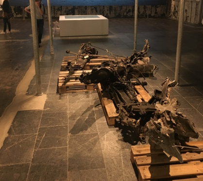 The visitors centre is divided in different rooms: a room of remembrance displaying pictures of the victims, a prologue room where video footage of Breivik parking the van next to the building is shown, the 22 July 2011 room with a timeline of the events and in the middle the melted remains of the van used to carry the explosive device, a video room which shows testimonies of the witnesses and a room focusing on the aftermath. All across the centre, the damaged structures of the building are visible and have been integrated into the design. The texts used have been drawn from the verdict of the Oslo District Court in August 2012.