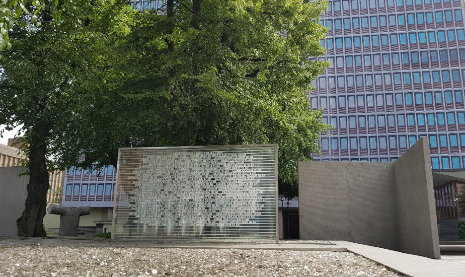 After Dalhberg’s plan for a memorial in the city of Oslo was cancelled, a group of architects called 3RW was tasked with establishing a temporary memorial in the city. In July 2018, the end-result was unveiled in front of the bomb site. It contains a glass wall with the names and the age of the victims, with below it a floor of broken glass, symbolising the glass found in the area after the explosion.